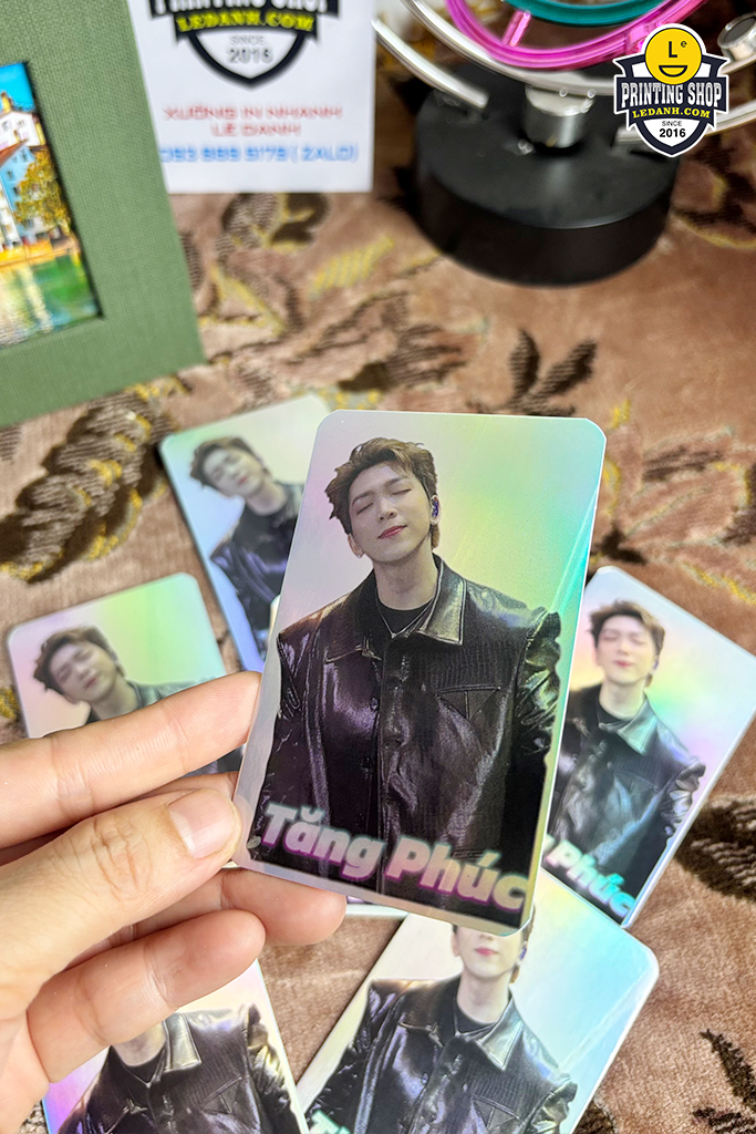 Qui cách : Size : 55X85mm, Giấy Metalize, in 1 mặt, Cán Màng 1 Mặt, Cắt Thành Phẩm.
