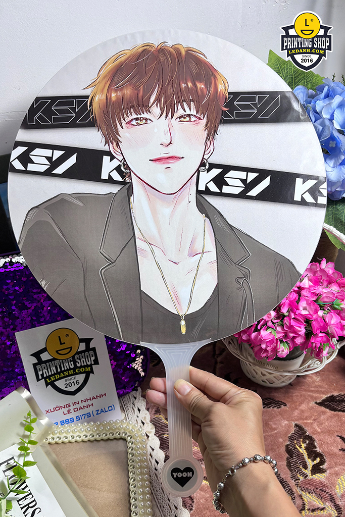 Qui cách : Size : 100mm, in 2 mặt, Cán Màng 2 Mặt, Quạt Nhựa Tròn 10cm